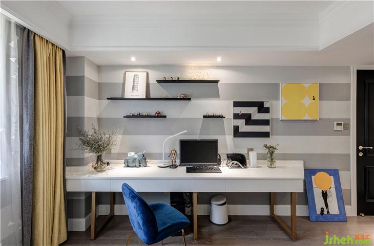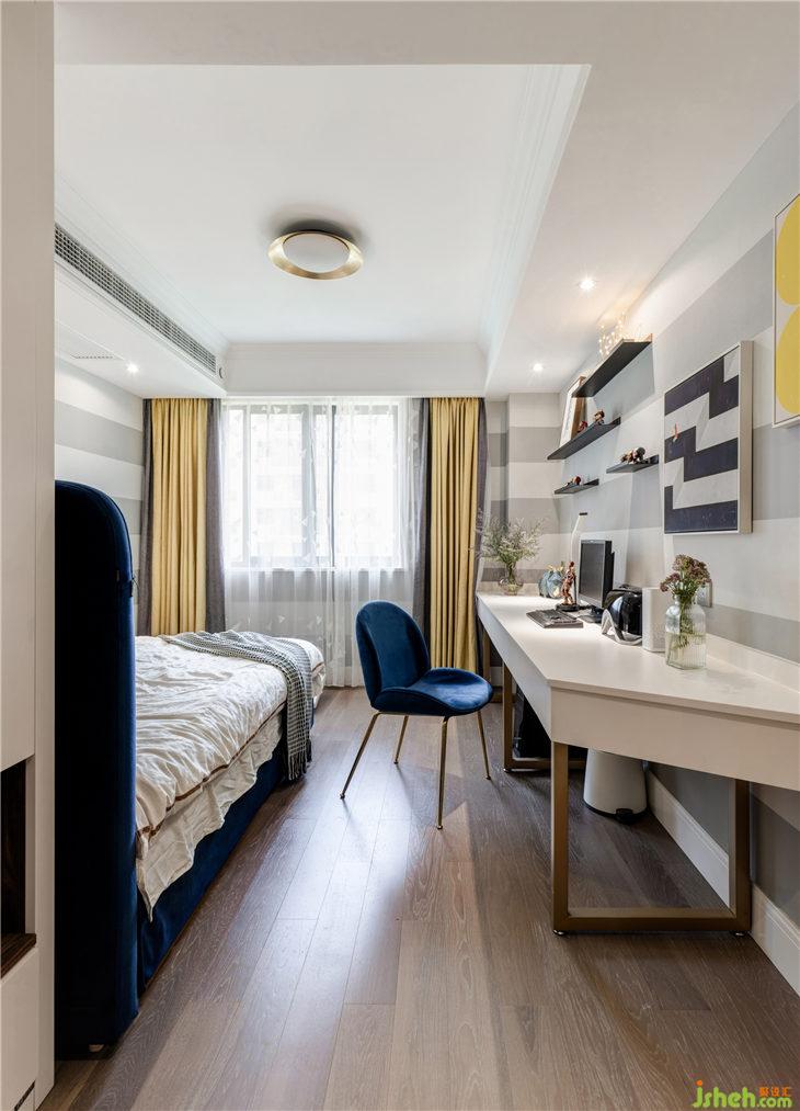 次卧的设计体现了现代感,混搭元素没有考虑太多,书房后期会转变成儿童房,所以后期的可变性还是要保留,现阶段还是书房和客房的多功能房使用。