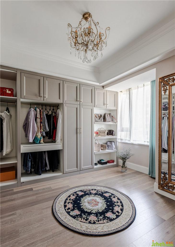 北卧是一个完整的衣帽间,收纳柜的组合,部分敞开,部分关闭,有条不紊的归置了女业主的所有心头好,漂亮的衣服,美丽的包包,相信这样的衣帽间是每个女生都梦寐以求的空间。