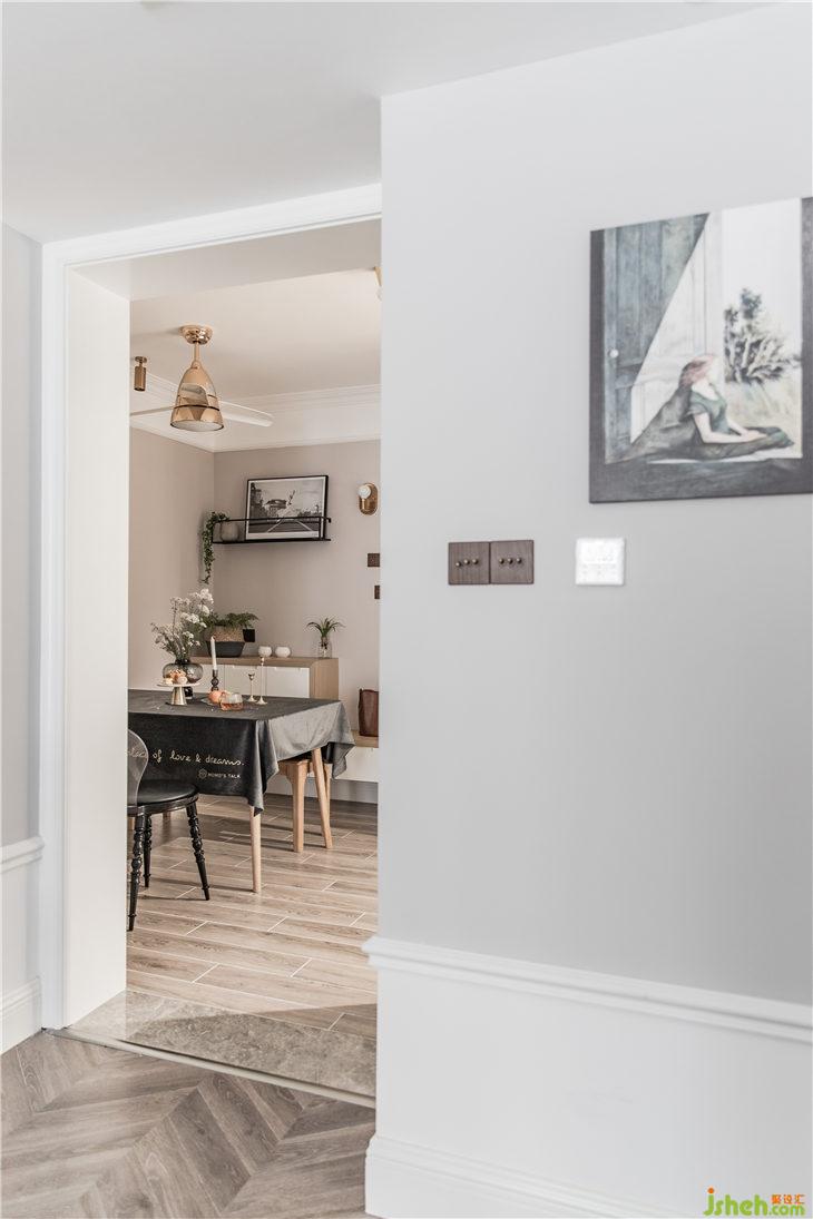 窗帘是素色印花,分层拼接,渐变的纱帘,就像被风吹拂在空中的蒲公英种子,追琢着属于自己的幸福。