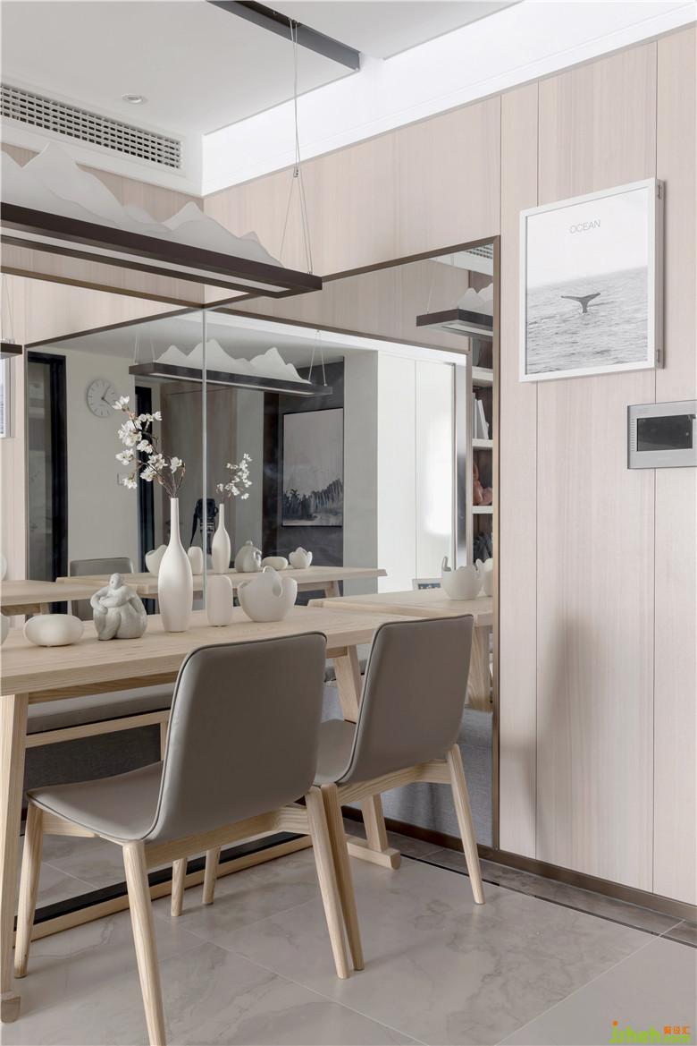 沟通几轮,室内设计师定稿了无生活阳台设计布局,男主平时用书房比较多,他想在客厅和主卧都能有融合性的办公空间,所以我们做了三个开放式的书房