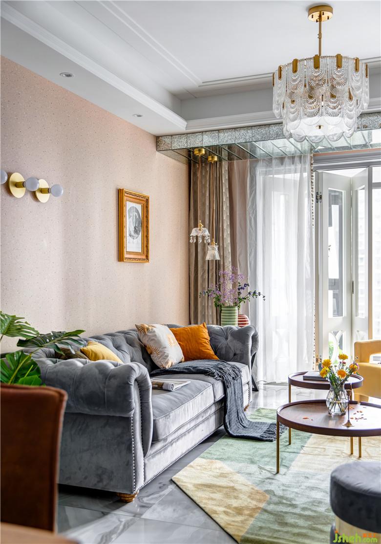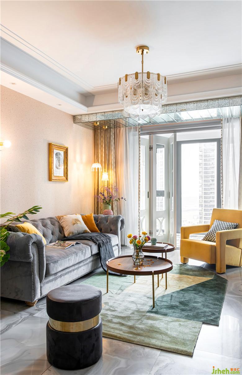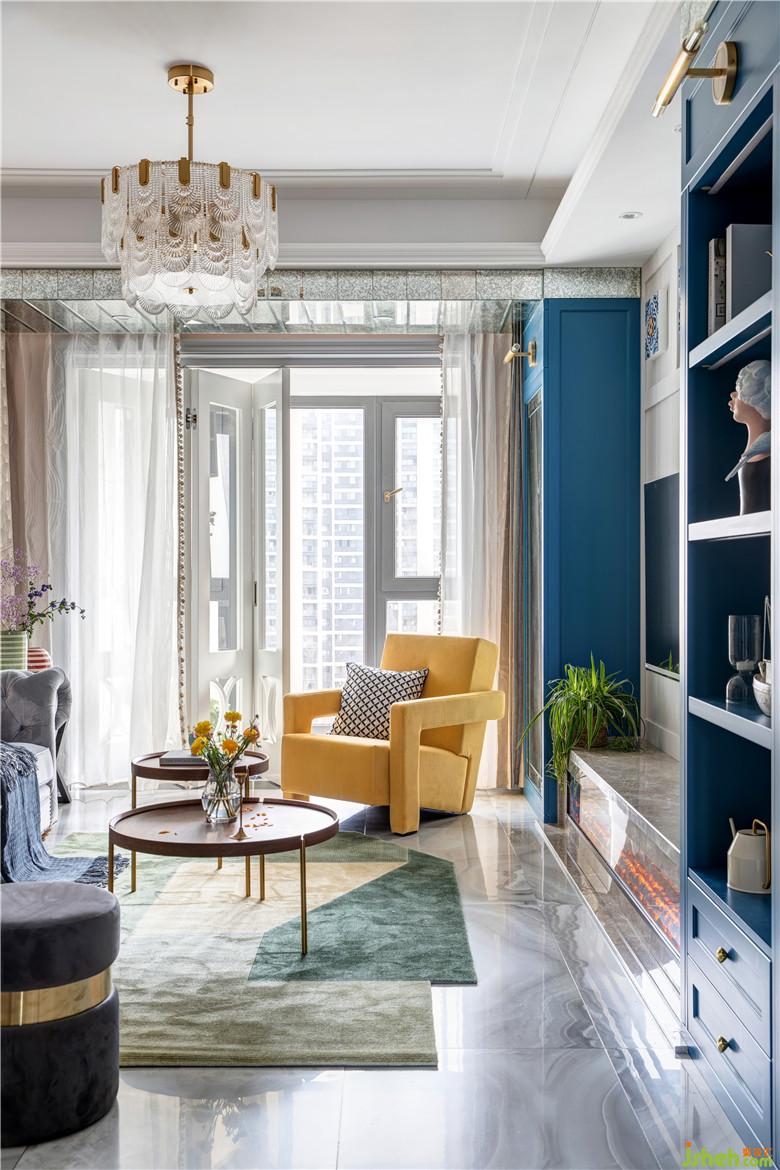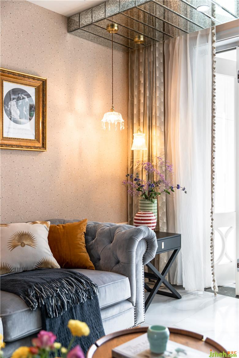 右边展示柜以展示为主,下方两扇抽屉储物,把手也是精选造型,复古镜面始终贯穿空间。