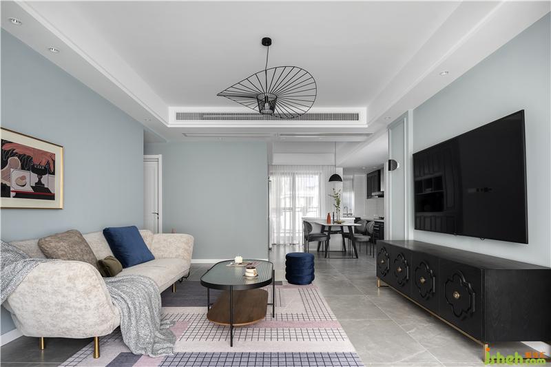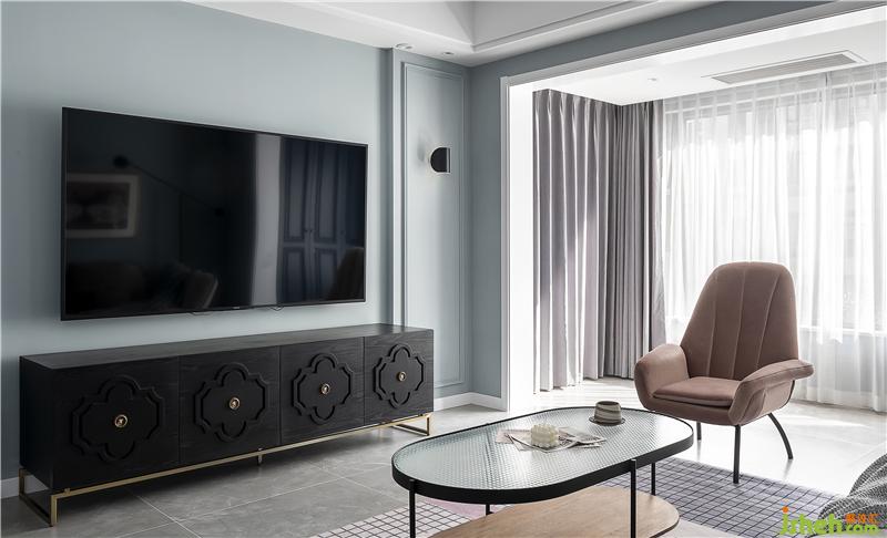 电视墙同样以简洁的石膏线为主,结合深色的电视柜,更为和谐。绿植的点缀也是一大亮点,为这个家带来了无限的生机与活力。