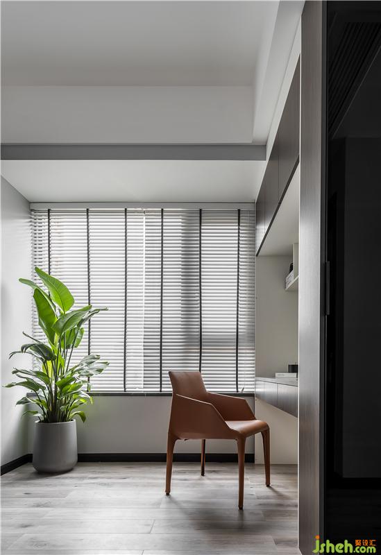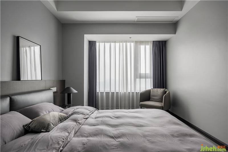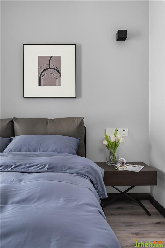 次卧简单的配色,给人一种想要安定下来的感觉。以简约的调性满足业主的需求,睡眠空间是让居住者更为舒适的,而不是单纯的摆上物件,让物件抢占空间。