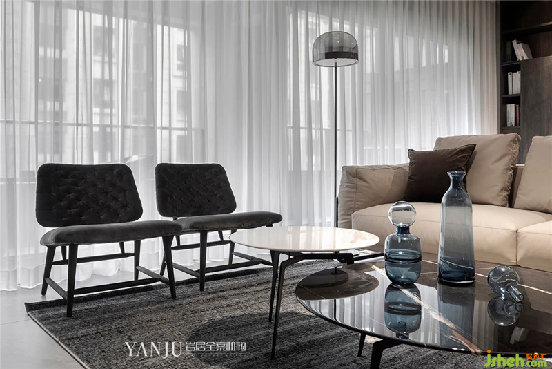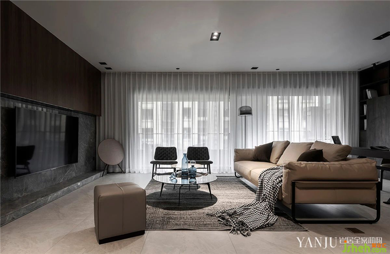 窗帘只采用一层薄纱,仅仅只考虑隐私保护。同时打通整个阳台滑门,让自然光线更多的进入到室内。