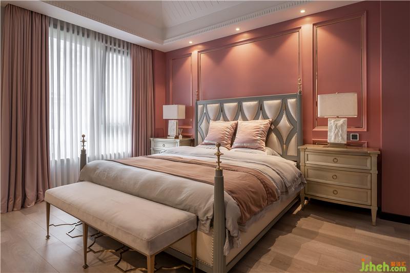 都说最好的爱情,是给她一个想要的家。主卧的布设,便是男主人对女主人爱的表达。主卧使用了女主人喜好的粉色,大面积的朱砂粉,粉而不腻,配上优雅的软装,整个空间显得温润有序。