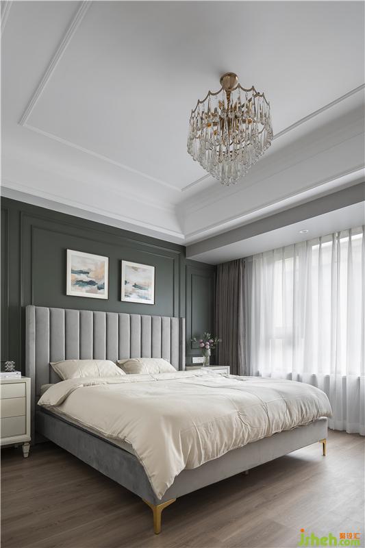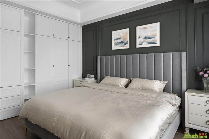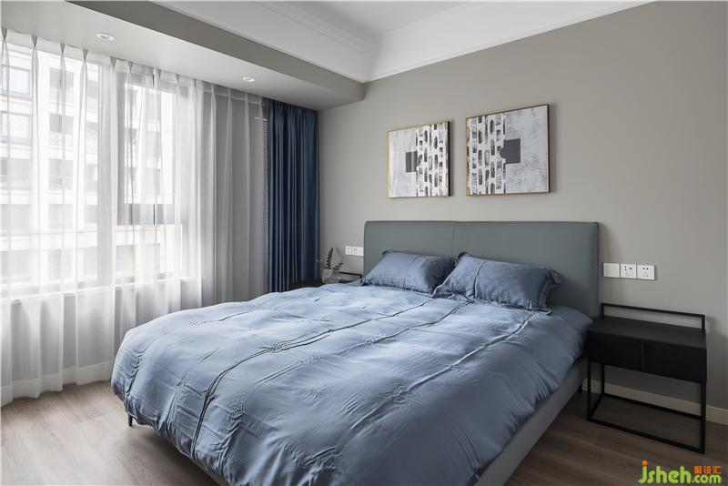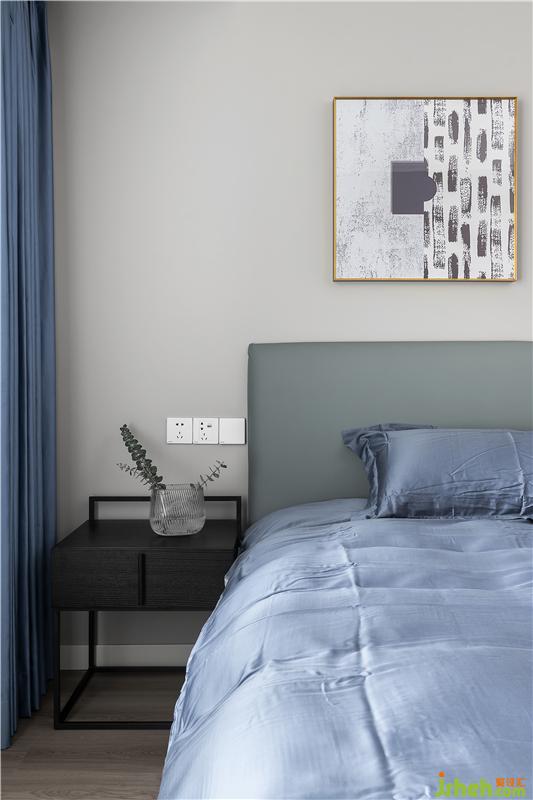 浅色背景墙搭配静谧蓝,营造出温馨的睡眠空间。