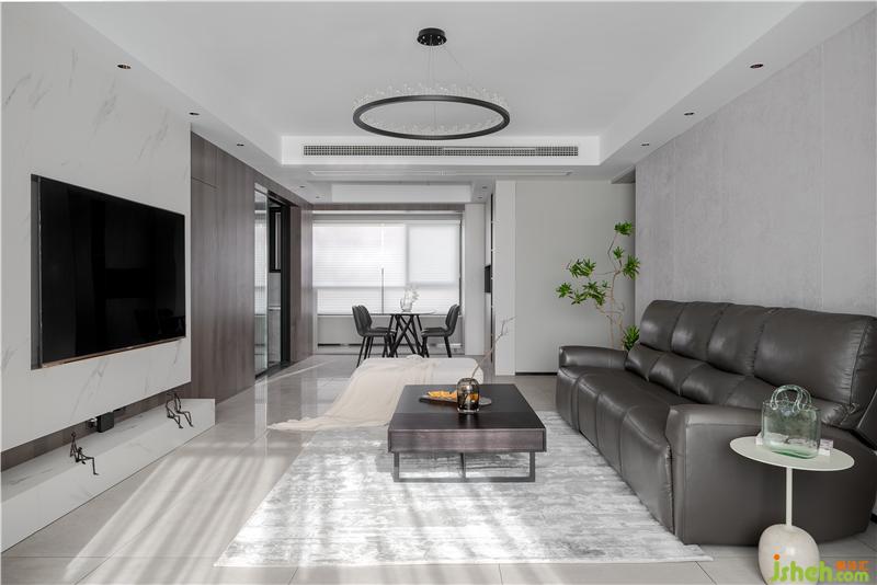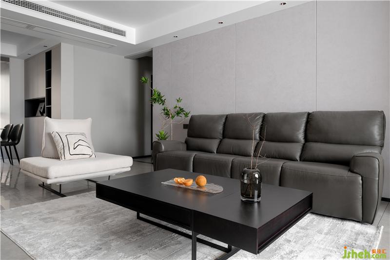 饰面板沙发背景墙耐看耐用,搭配绿植让空间变得更有活力。男女主人都比较喜欢看电视,用到沙发的时间会比较多,功能性按摩沙发是不二的选择,既大气又舒适。