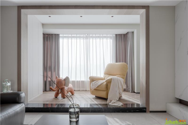 大大的落地窗让阳光更好地洒进来,橘色小象和橙色摇摇椅给这个空间注入了更多活力因子。