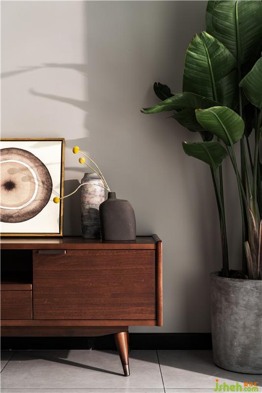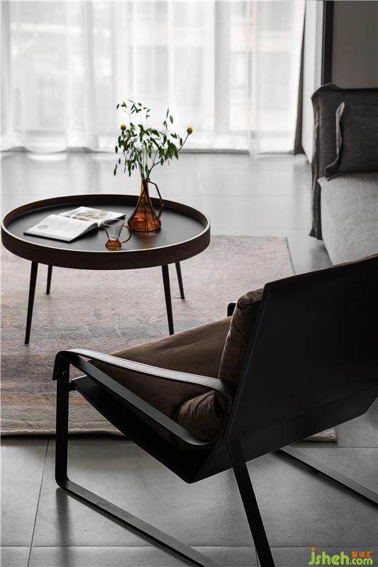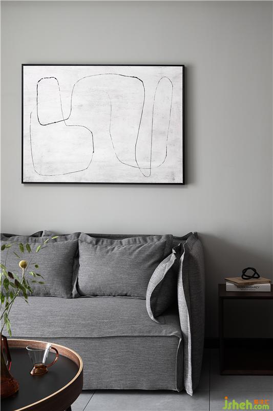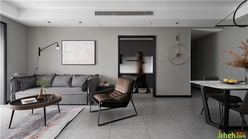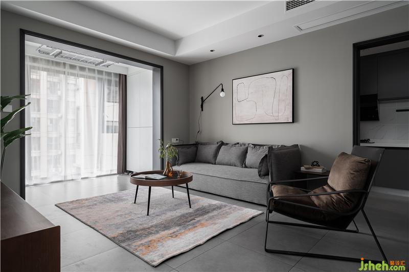 浅灰色沙发,辅之一把棕色单椅,沉稳的气场直接hold住全场,再加上现代感很强的挂画和黑色金属壁灯,整个客厅装修设计彰显着简约艺术的气息格调。