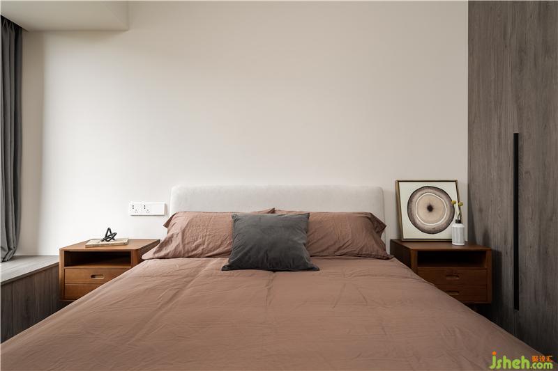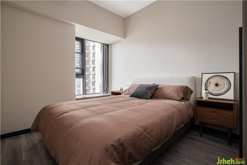 粉色永远是浪漫的主题,配上深色的家具,让房间更有质感,小飘窗让卧室更加明亮。