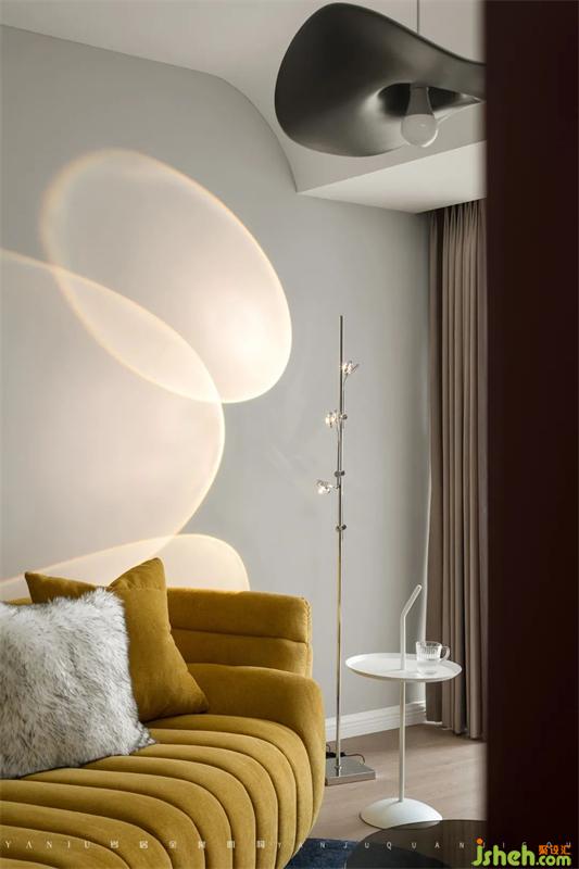 餐厅的布局十分巧妙,不是传统的开放式也不是封闭式,半开放式巧妙地划分客餐厅和入户,三者又融合恰当:距离厨房的动线合理,方便居住者使用;半融入客厅,视觉上增大了面积,使得空间灵动婉转。