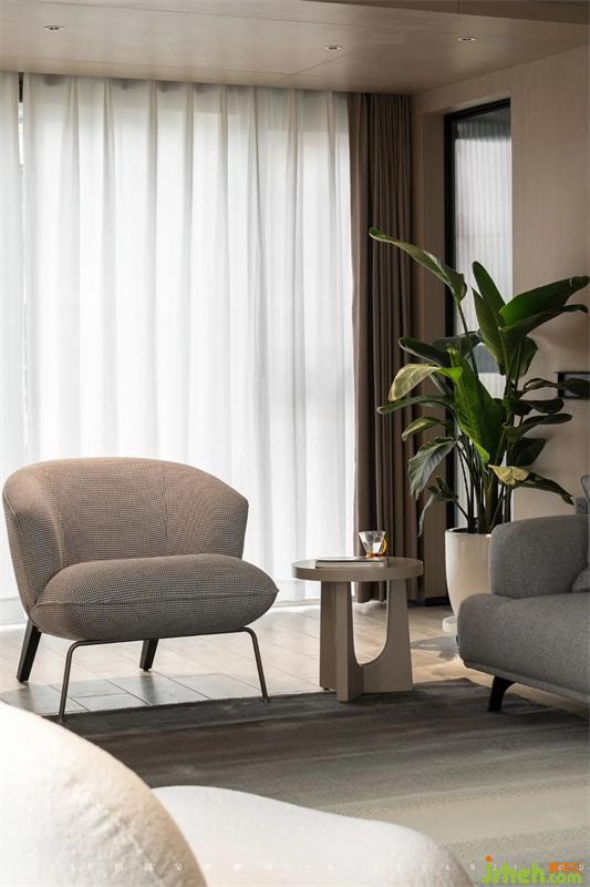 客厅布置简洁,小型家具给家人留出更多活动空间,同时扩展视觉效果,显得通透舒适。墙面木饰面板丰富空间层次,完善风格表达。