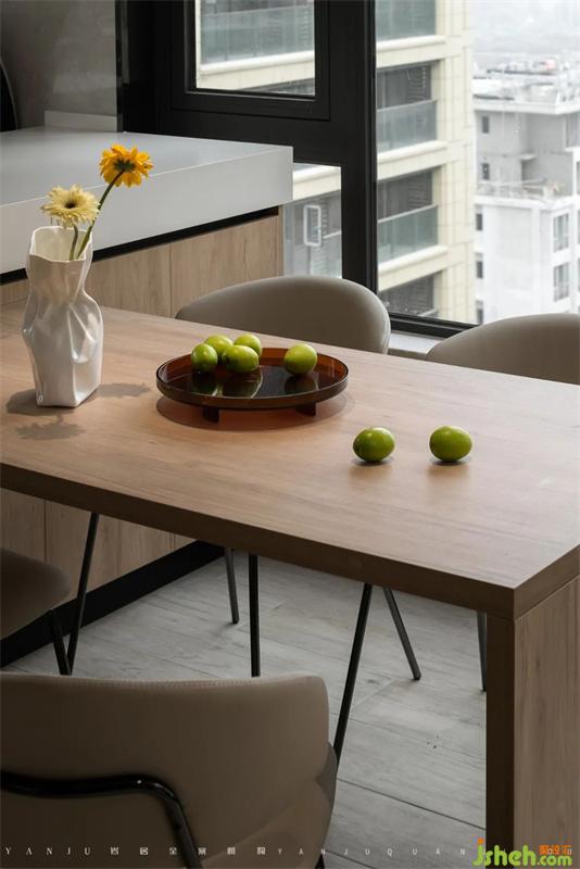 内包进来的阳台做成了全落地窗的形式,一来优化采光,二来方便公共区域的通风。