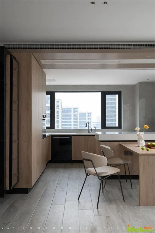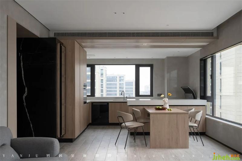 客厅、餐厅、厨房一字排开,看似在同一空间,却又划分明确。