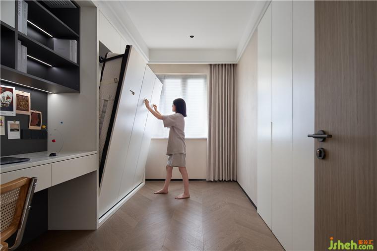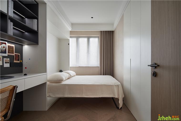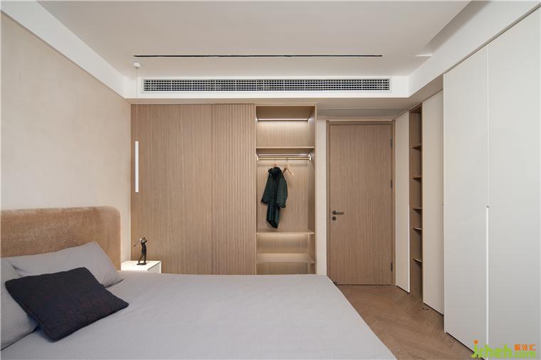 3.主卧向功能房借位分隔出衣帽间,满足业主日常衣物、鞋包的收纳,精致生活更进一步:
