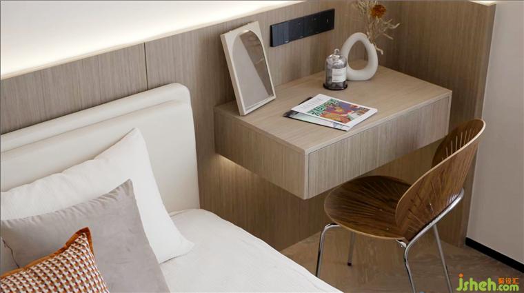 6.多功能房安装墨菲床,灵活折叠,满足实际办公与会客短居的空间需求。