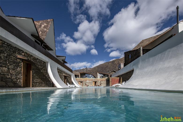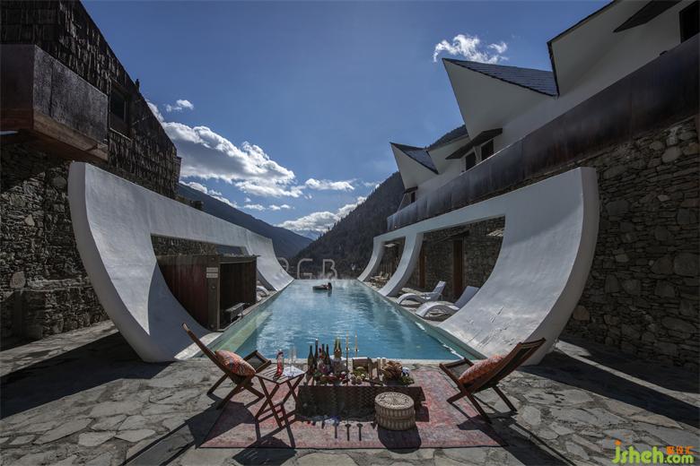 长方形的水池和弧形镂空的隔墙设计,在飘散若烟的氛围中,雅拉野奢温泉民宿设计围合出一处洗尽凡尘的人间仙境。