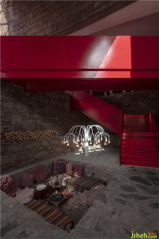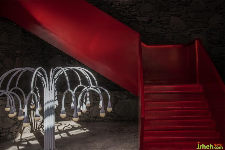 图腾化的红,用在接待休闲区的楼梯上,格外吸睛与耀眼。