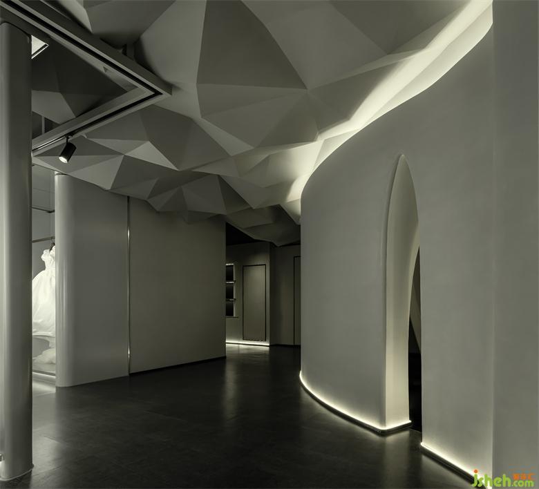 优雅与个性兼具,突破了传统婚纱空间的范式,厘定了整个幸福旅程动线上的空间情绪基调。