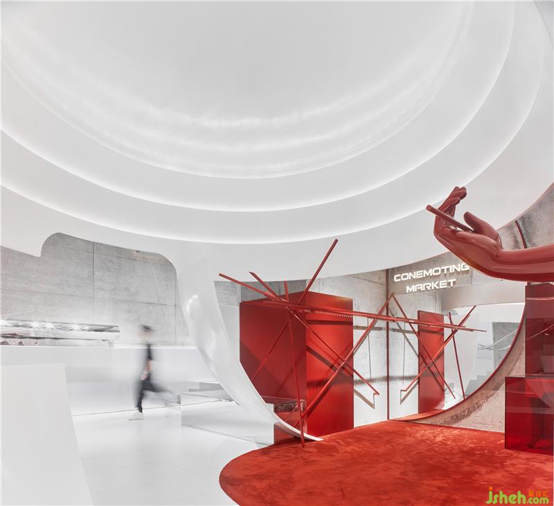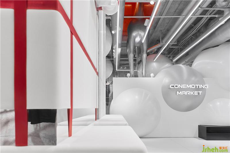 实体店的僵局和功能在Conemoting market被轻松地打破了,在这里,客人在店铺拍照成为价值增长点,一张网红照片的获客能力和带货潜能在线上真的无法估量!设计赋予了这个店铺全新盈利通道!