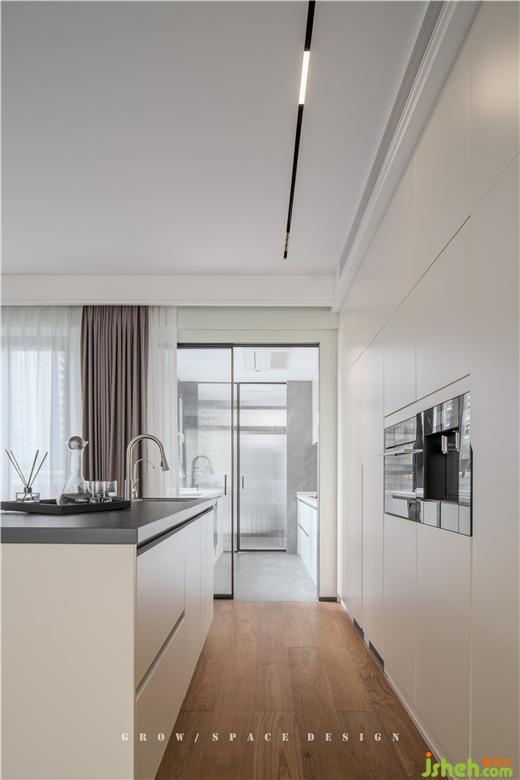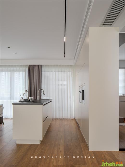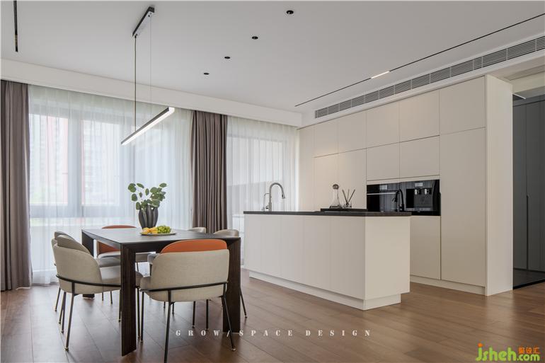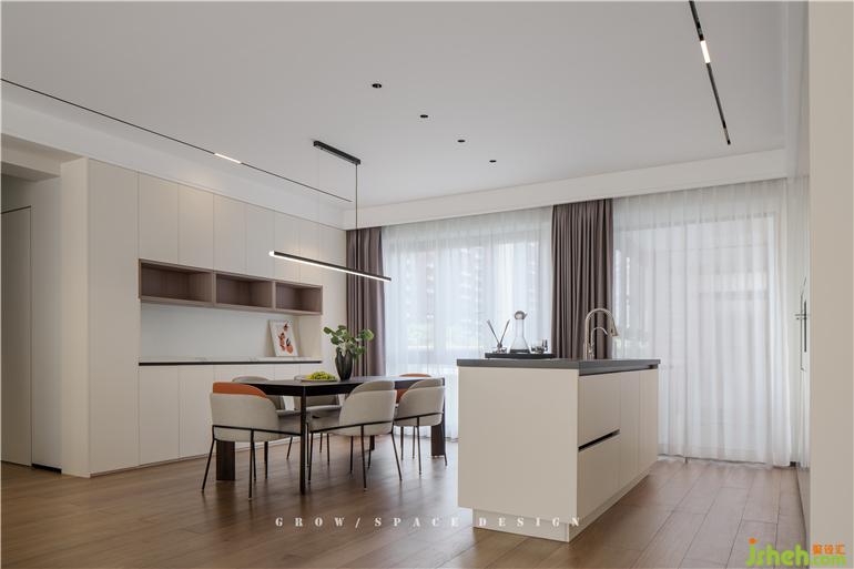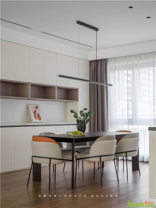 此案为5室2厅2卫的大平层,本案花园设计业主是一对年轻夫妻与可爱的宝宝同住,偶尔父母过来小住一段时间。两口子生活中性格安静随和,也向往无拘无束的自由氛围。女主人爱好烹饪,崇尚简单的生活方式。男主两人对新家有着一致的幸福期待:宽敞明亮的中厨、西厨、独立的书房、衣帽间,儿童房,父母房,以及一整面书柜。我们梳理了屋主的需求与喜好:以现代简约,渲染整屋;打造以沙发为中心的洄游动线,全屋开放互通,重组空间。设计独立的中厨与西厨,女主人可安心大展厨技。从主卧剥离出的半开放书房,营造互动式办公氛围。