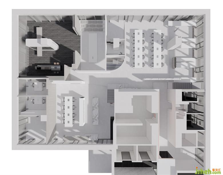 正如路易斯·康所言:“建筑是空间的创造性思维,是某种和谐的自发形式,能够很好地服务于建筑空间的目的。”基于清晰的组织结构和逻辑体系,办公室设计师以现代主义为外在格调,剔除了冷漠性与严肃性,并且运用隐喻、变形、解构等手法,倡导用多元的“视角主义”来拓展思维。这种潜在的秩序感所带来的意义,也成为一种明确的符号与标签,作为公司文化的独特代言。