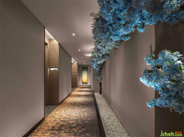设计源于自然,在走廊空间融入“花影移墙”的自然景观,酒店设计以花为伴,形成了循序渐进而生动幽雅的空间动线;花木有时,更得清新可爱。