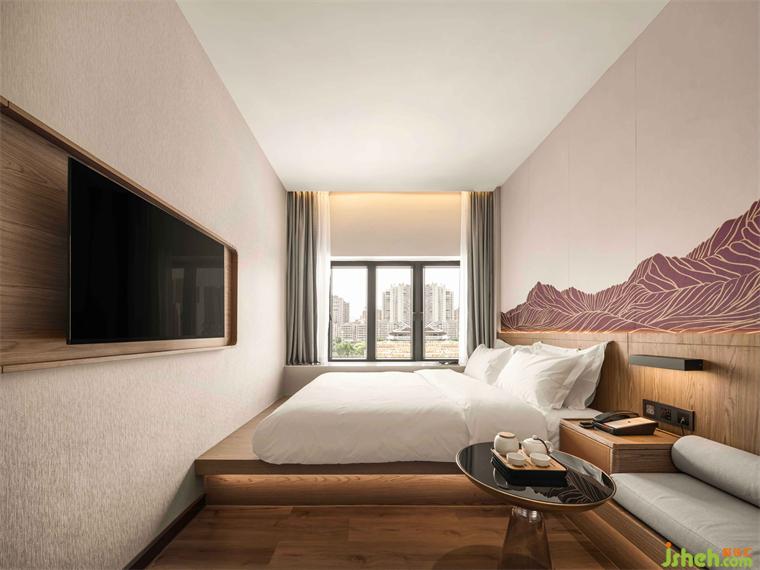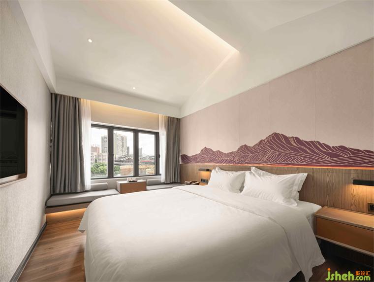 在艺术与功能的互力转换下,酒店空间实现了文化、酒店设计情怀的呼应与升华。视线由内而外,呈现于眼前的,是历史文化名城的繁华盛景。