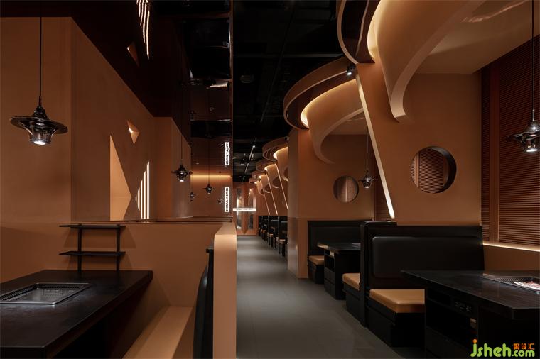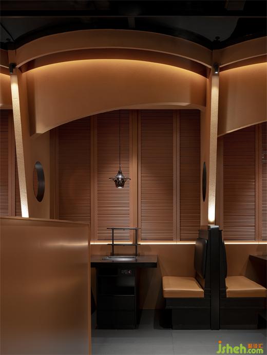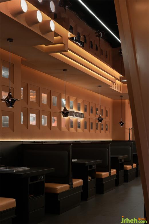 通过柯布西耶的粗野主义和超现实美学,在虚实之间。光影之途里,餐厅设计衍生出了一曲几何建构下的盗梦逆空间狂想。寿喜烧餐厅设计以镜面空间,以模糊空间,以氛围洗光,在极端受限的三维空间里缔造第四维度,探索空间的更多维度可能性。