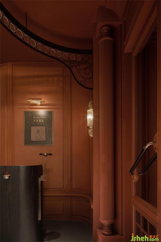 本次方案当中大量用到了定制朱红色钢板。同时西餐厅设计搭配艺术漆以及小规格条砖。
