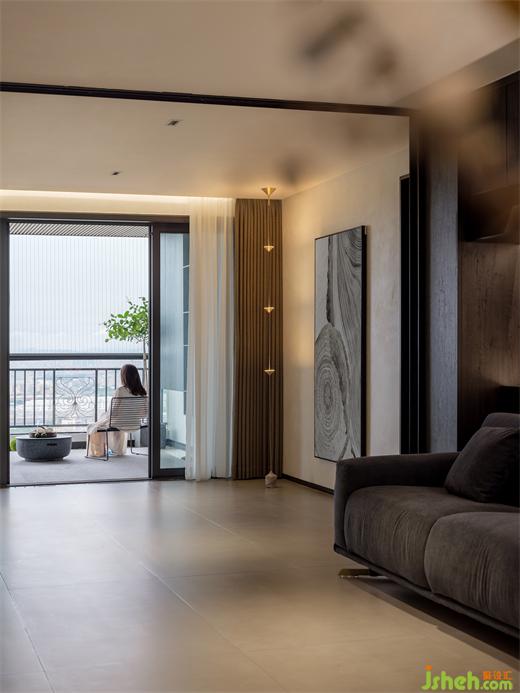 阳台到餐厅在改造后一整个贯穿,不仅释放了更多的空间容量,恒大御景半岛装修设计还提升了空间的通透性和开阔感。天花黑色线形灯和暗藏折叠门,具备功能属性也将空间做了虚拟场域划分[休闲阳台] [钢琴区] [多功能阅读],丰富公区的边界形态以创造多场景的互动机会。