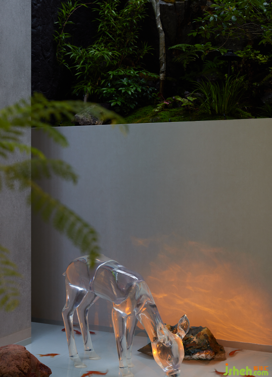 在景观小品的布置上,设计师通过光影的明暗对比与虚实的巧妙处理,将自然形态与功能展现融为一体。