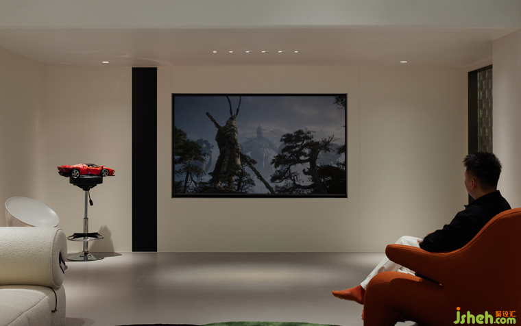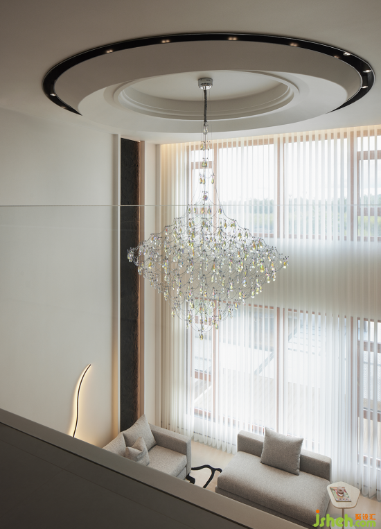 大理石电视墙体后方是别样天地,水晶艺术雕塑的引领下间隔出摆放艺术品的玻璃展柜区间,借设计之手,艺术浪漫中透露奢享,以视觉情绪带动自由舒适的美妙氛围。