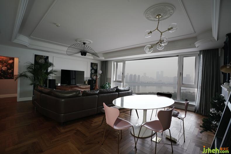 本案业主为年轻思想前卫白领,对生活品质有着高要求和个性需求,注重优质的硬装体验。我们在设计处理灵活运用,硬装顶部为简欧的线条概念层层叠叠错落相间,偶尔镶嵌白色的艺术灯盘艺术花型吊灯精雕细选透露出都市奢华气息。墙壁局部艺术墙纸造型,墙漆,艺术涂料,文化墙面把各种材料运用得淋漓尽至。原木书橱加板式衣壁柜对收纳有整体的把控,在巨大的落地窗前俯瞰江水北上岛上木屋隐现,心怡静然。地面大面积的实木人字形地板铺设,搭配进口地砖瓷砖,再次让品质二字得到释然。软装林林总总的混搭模式,北欧元素美式偶现局部都市奢华,在彩色布艺的连贯下激情澎湃又安静自然。然细节和工艺是全案的核心是全案的灵魂整个过程就是一本书一篇文章一个故事。