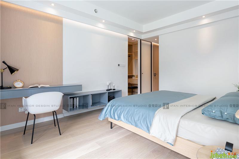 主人房原本衣柜和床的空间位置比较紧凑,室内设计师合理利用空间,把中间的卧室面积分一部做主卧的衣帽间,“变出”一个女主人梦寐以求的步入式衣帽间。