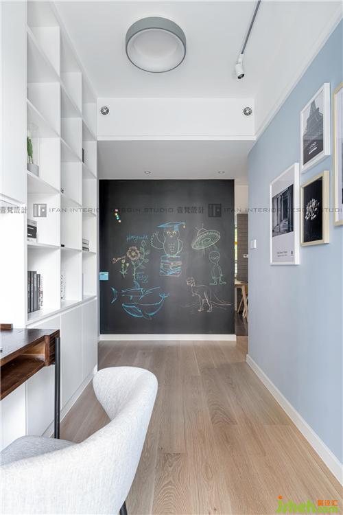 开放式的学习室、到顶黑板墙,孩子的学习不再局限于一处,放逐灵感,随时绘画出心中的童话世界。