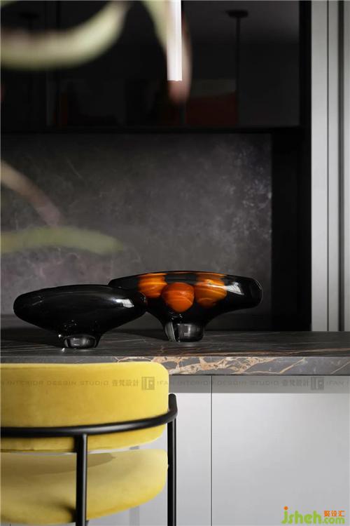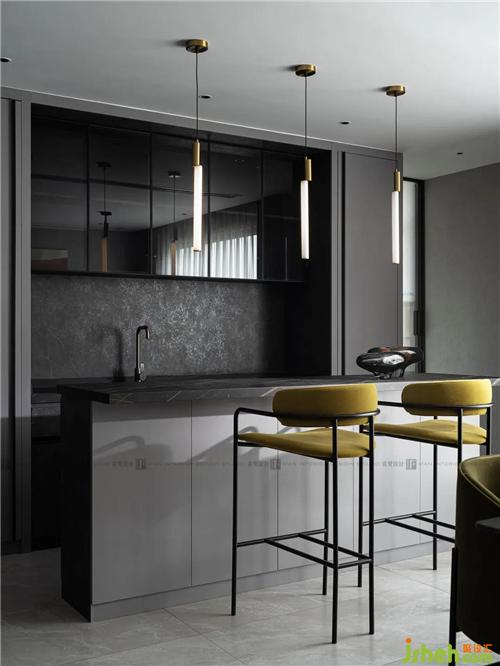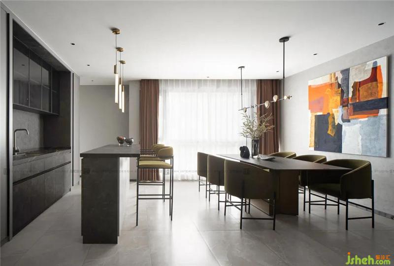 对于烹饪爱好者来说,同时拥有中西厨是一件非常快乐的事情。原中厨位置设计成开放式西厨空间,与餐厅互动更紧密;岛台的设计也实现了自由多样的用餐空间;