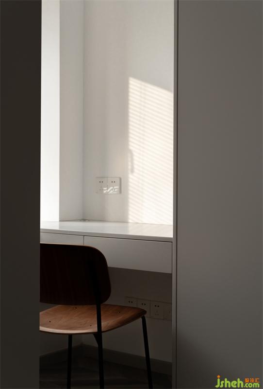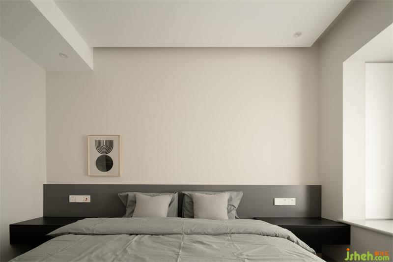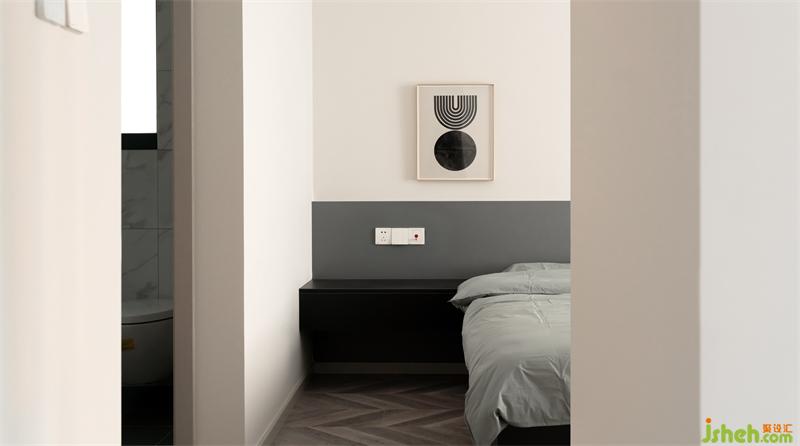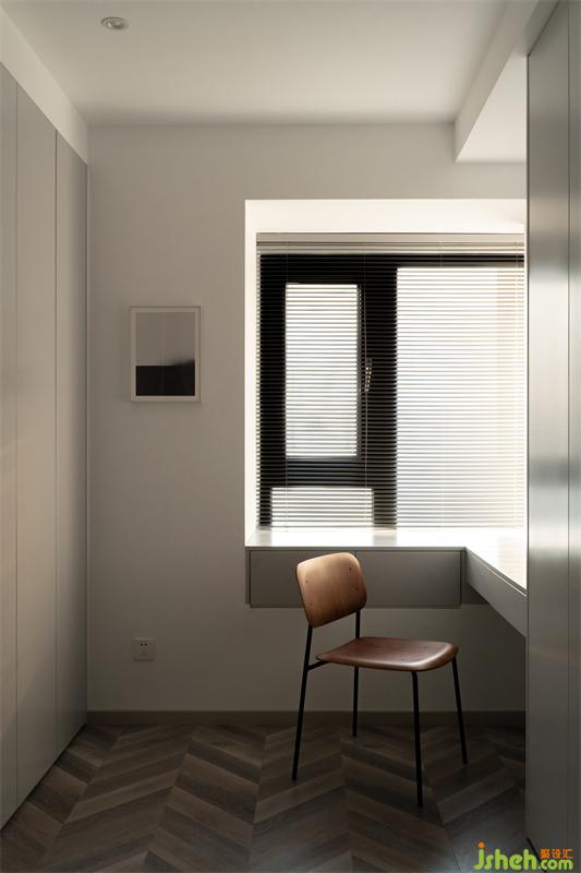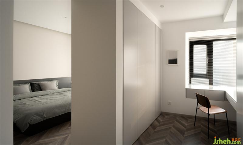 Use low-purity warm colors to create a warm and soft home space, bringing a comfortable and cozy home atmosphere, the bedroom and the study are integrated, and the bedroom space is reasonably used.
