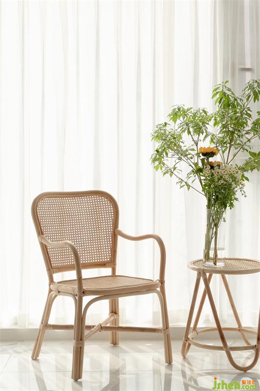 木制的家具,干净的墙体色,材质粗细的不同,达到丰富的视觉与触觉体验。