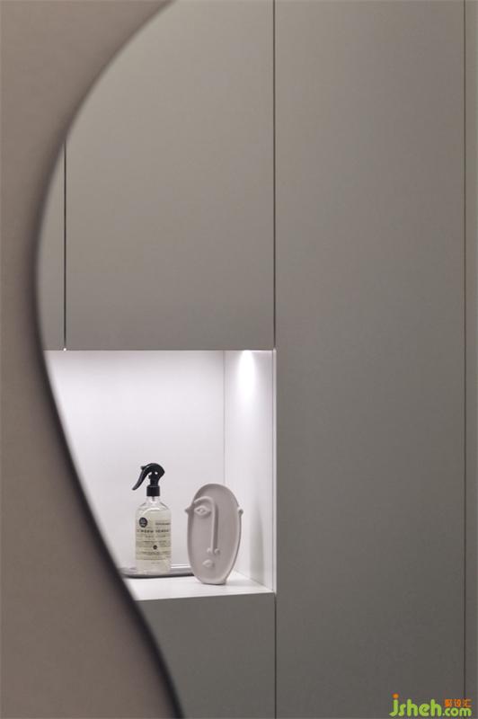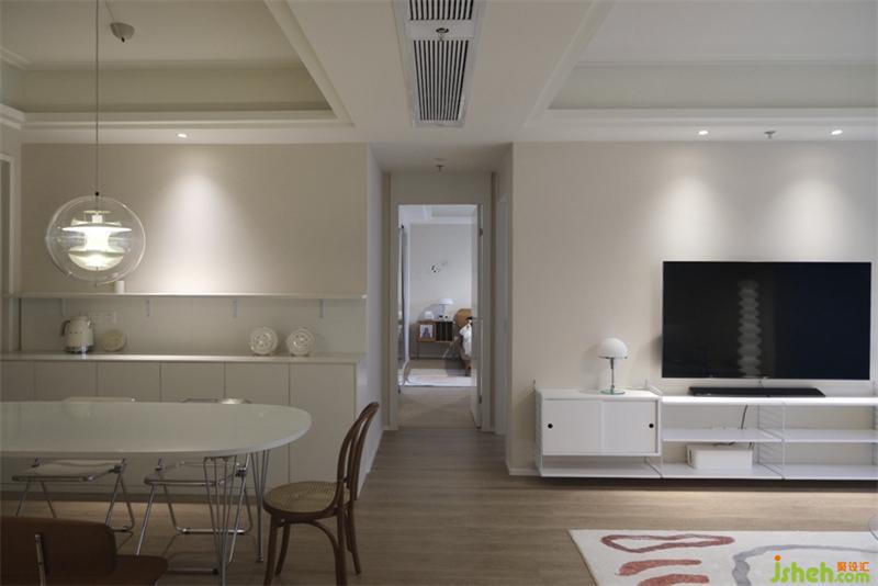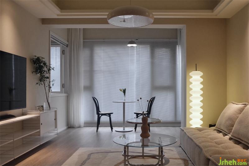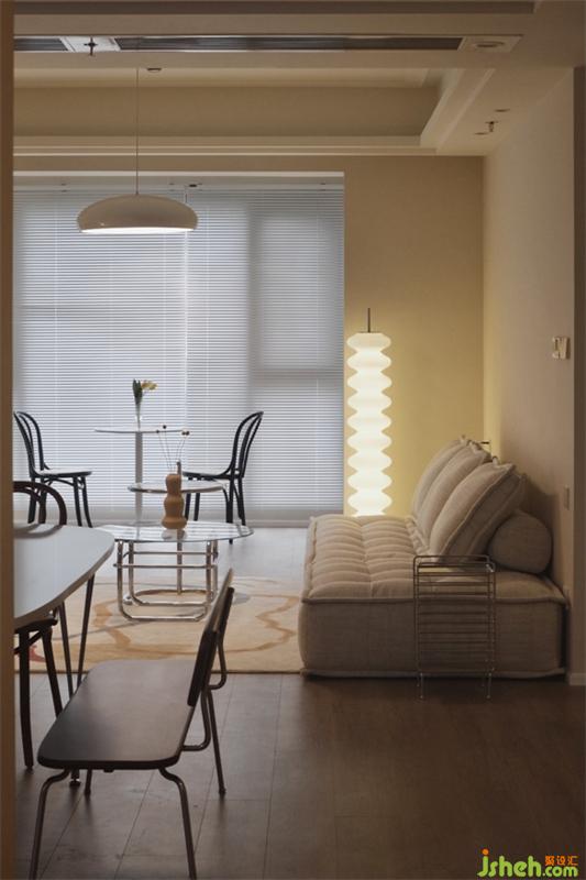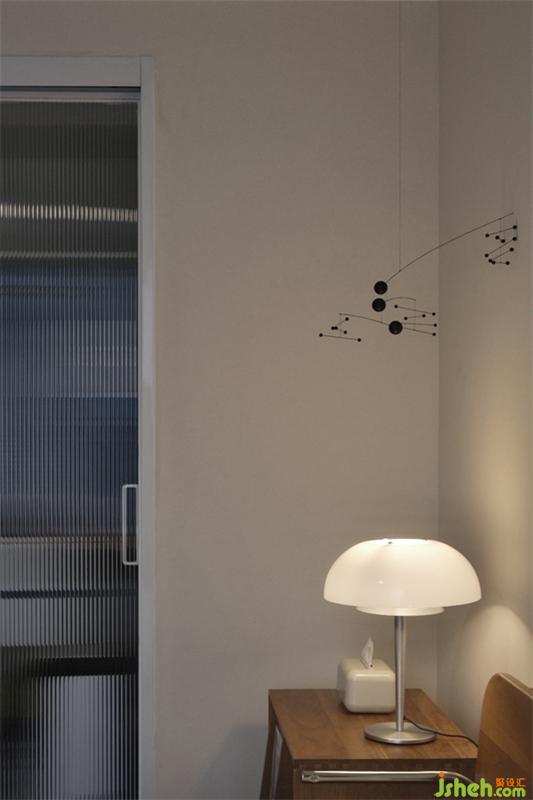暖暖的灯光,干净的墙体,舒适的沙发,玻璃材质的茶几,看似没有关系的几个物件搭配起来却有着丰富的视觉与触感体验。