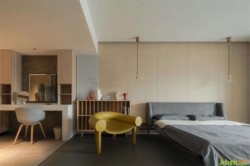 We use a translucent screen to separate the master bedroom from the lounge to coordinate a sense of space.