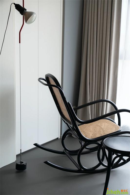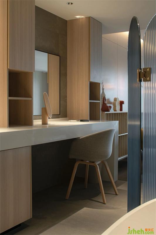 我们利用材质的划分将主卧室休憩区与功能区分开,半透明的屏风使空间在若隐若现之间彰显出十足的高级感。