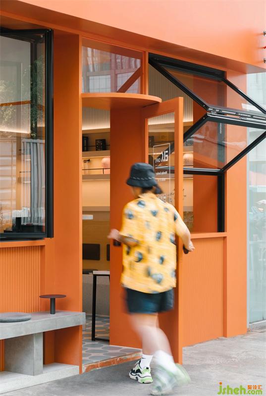 我们使用日出橘作为主色调,吸引来往人群的目光,同时寓意着太阳,引导着每个路过的上班族,喝杯咖啡为忙碌的工作开个好头。