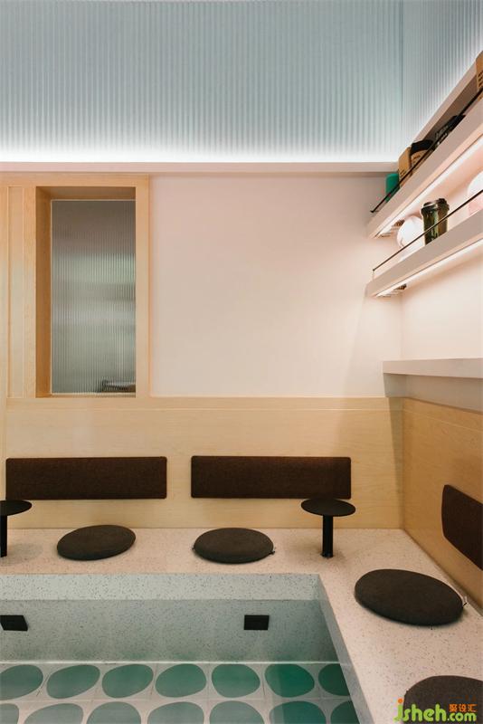 薄荷绿作为内饰,在充满热情的外表下,内心也能温馨自然,给进来的人们有舒服的依靠。