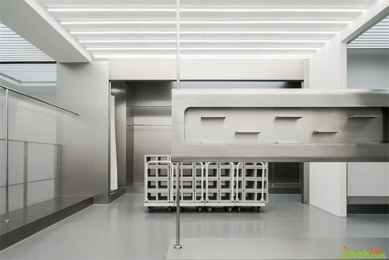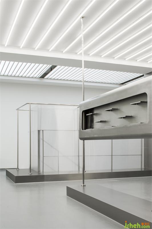 白色的空间,水泥地板,金属质感的衣架,感受这由空间带来的未来感。