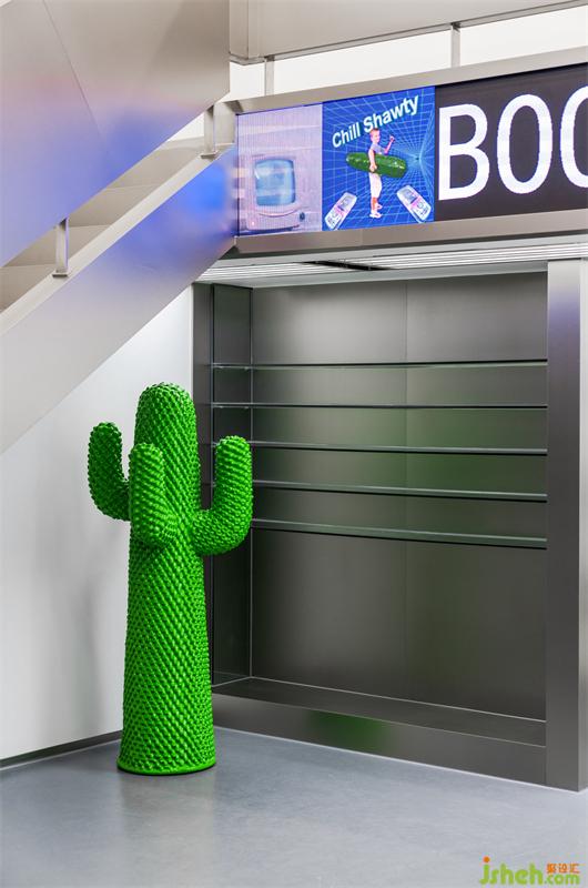 成都店铺设计最为吸引眼球的一定是收银台后的铁质栅栏,而栅栏的背后其实藏着一个小秘密,这是一面以电梯形式表现出来的墙体。