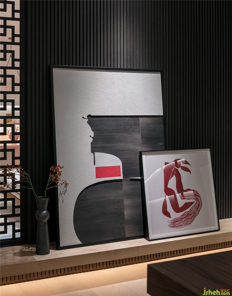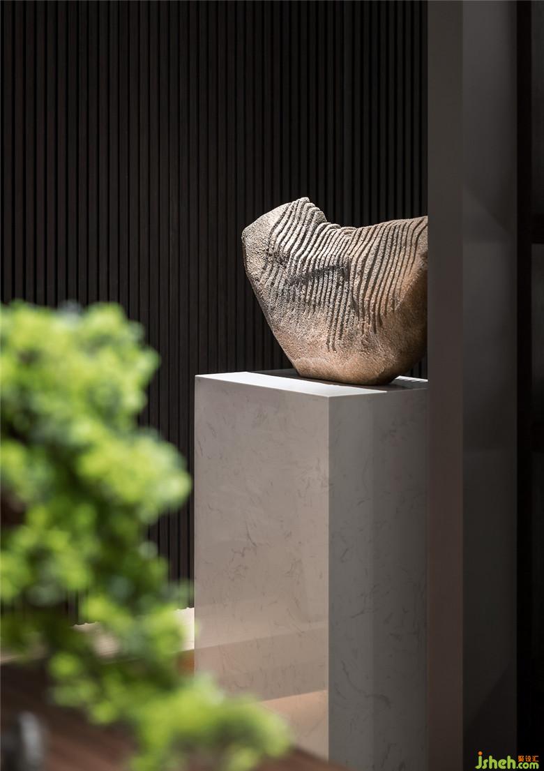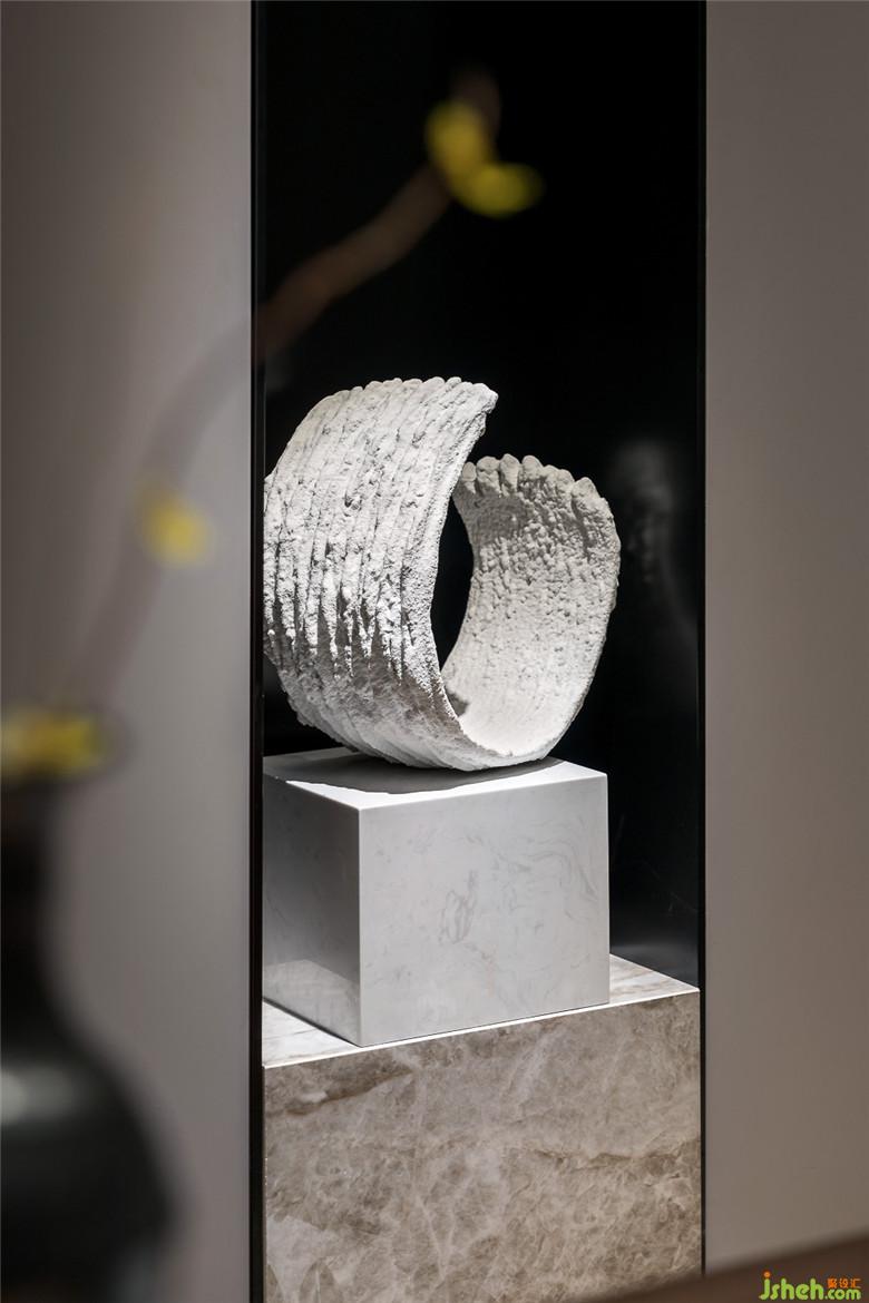 大自然的光怪陆离成就了最好的素材,设计者用雕塑千姿百态的特点塑造了奇特的景象,结合在层板上彰显个性且富有灵动的靠画,巧妙的体现了在静中显动的韵律。