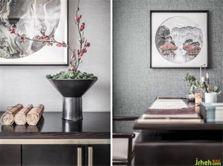 慵懒的阳光透过玻璃,恰如梵高说“我的房子沐浴在灿烂的阳光下,在这里,我可以生活、呼吸、沉思和作画。”,山气日夕佳,飞鸟相与还。墙上的花鸟突出业主热爱生活的一种积极态度,在设计中也体现出了雅文化