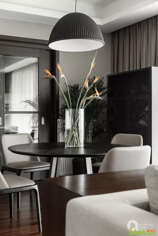 在陈设设计的时候,用的所有的花艺和布艺都偏向柔和,并在客厅的墙面上改加勒墙布与艺术涂漆,让整个空间看起来简单而不单调,并在同色系里用了色外之变,很好的区分材质和肌理,寻得空间中的层次感。除此之外,会用到一些金属的家品,用来补充空间中的灵气,不致于太过死板,并提升空间里的品质,跳脱之后又回归沉淀。