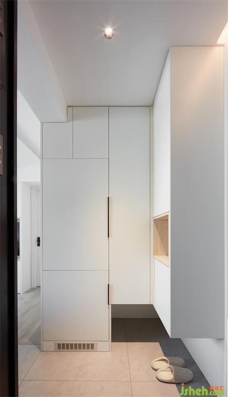 玄关暖黄色调的加入,平衡了艺术摄影的生冷意境。